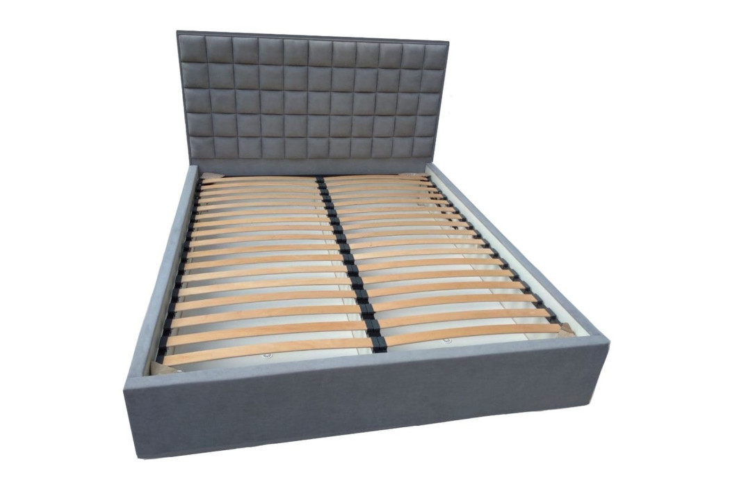 Кровати Синди имеет необычный дизайн изголовья четкими квадратами. сформированными глубокой линейной втяжкой ткани.