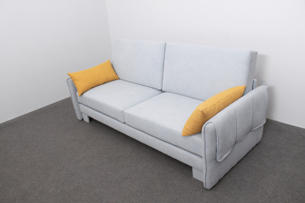 Дивани єврокнижка зазвичай мають комплектацію підлокітниками й опорними подушками під спину, а також білизняною нішею під сидінням дивана.