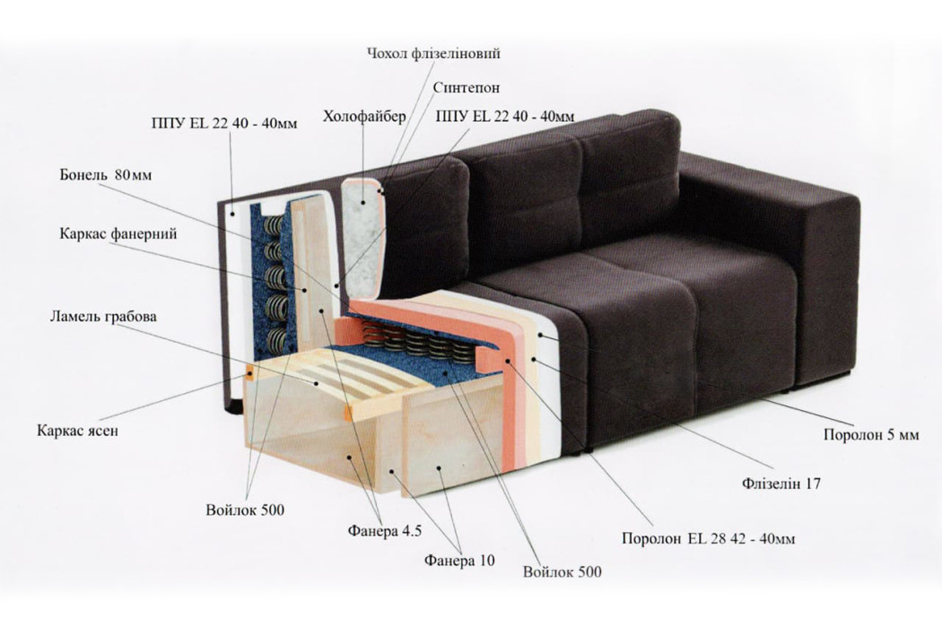 | Матеріал каркасу | Натуральне дерево, фанера |