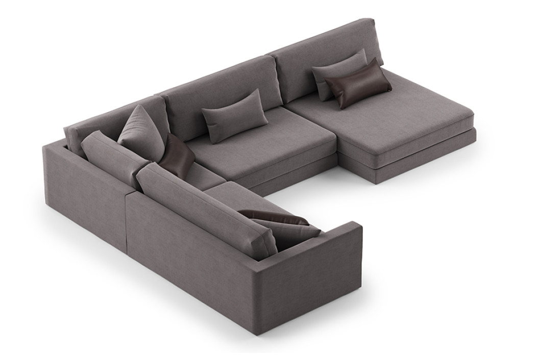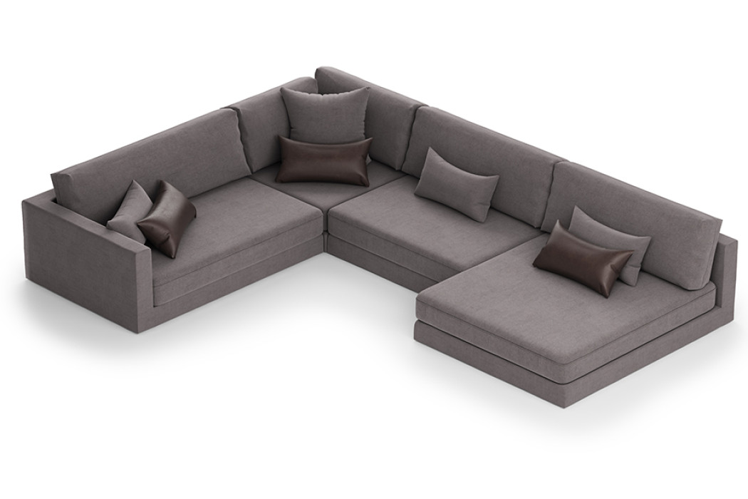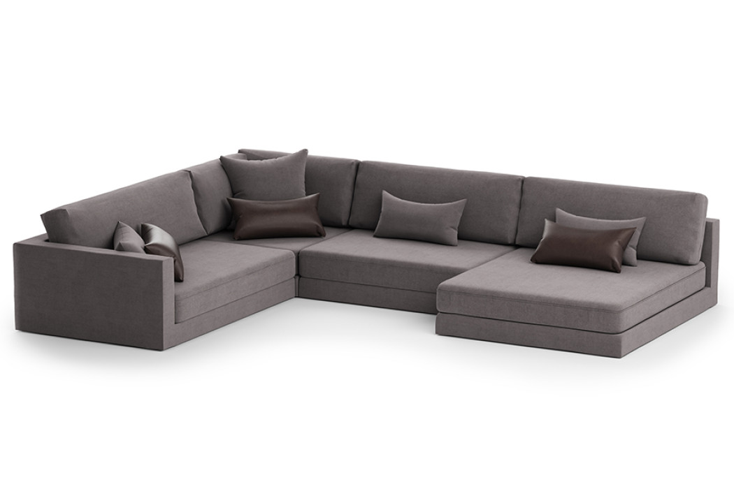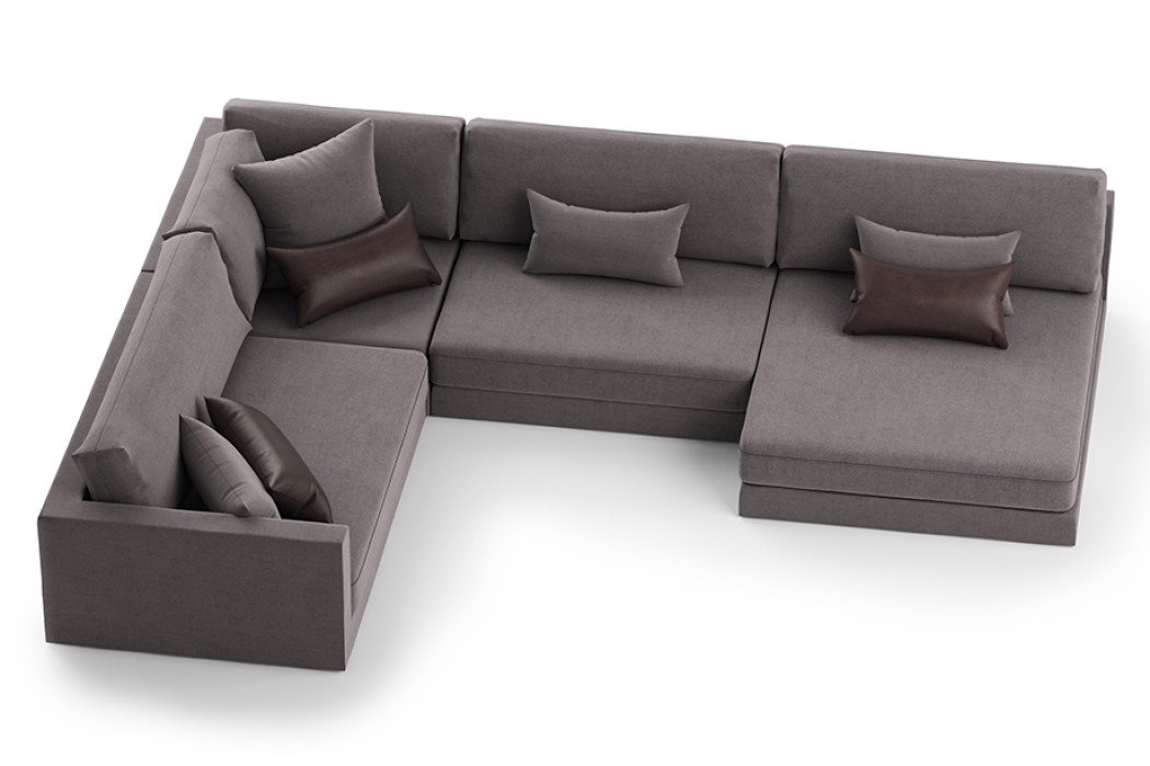 Можливе формування великого м'якого куточка на всю стінку з окремих модулів - окремих м'яких елементів і кутового елемента. Розмір такого кутового дивана може бути необмежено великим.