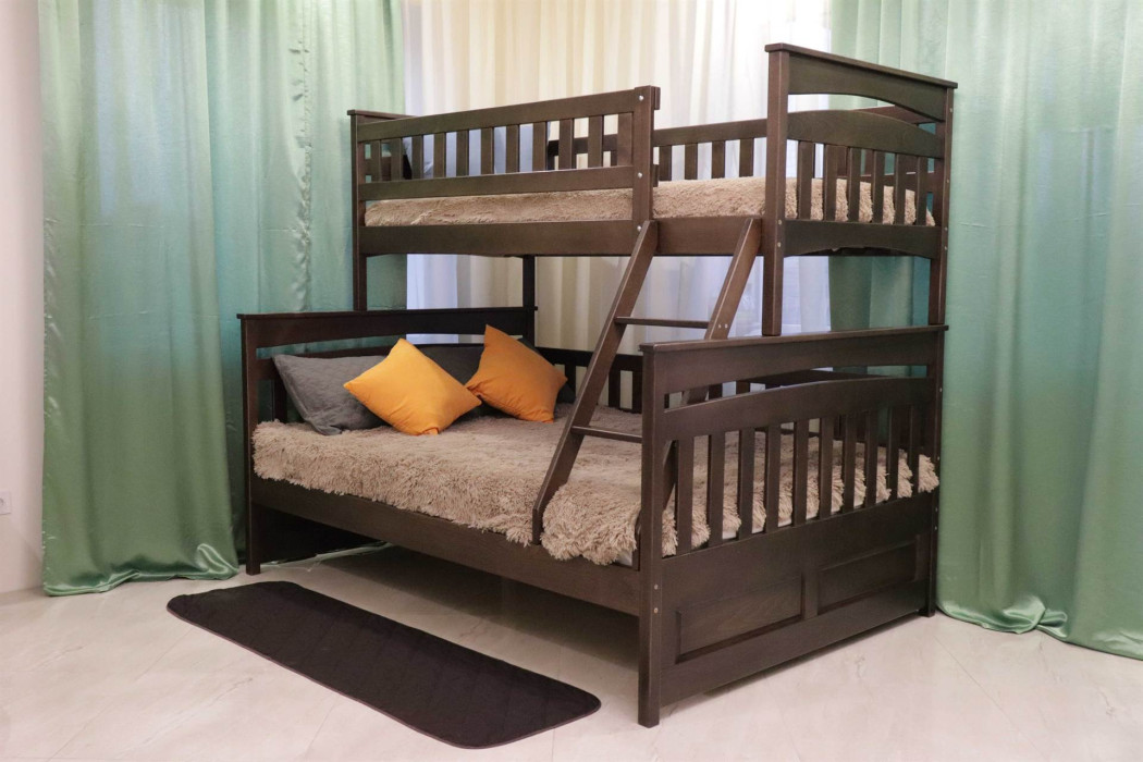 - зручне розміщення: двоспальне ліжко знизу + односпальне зверху;
