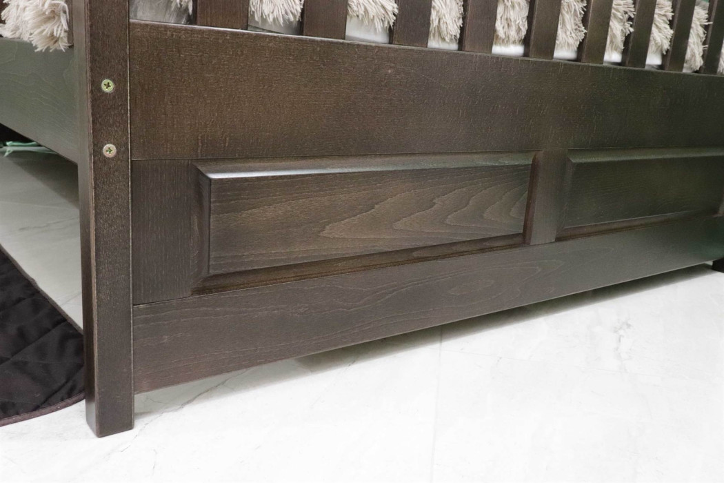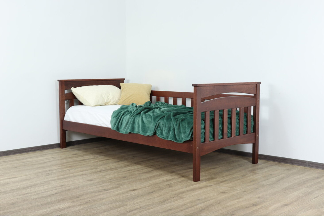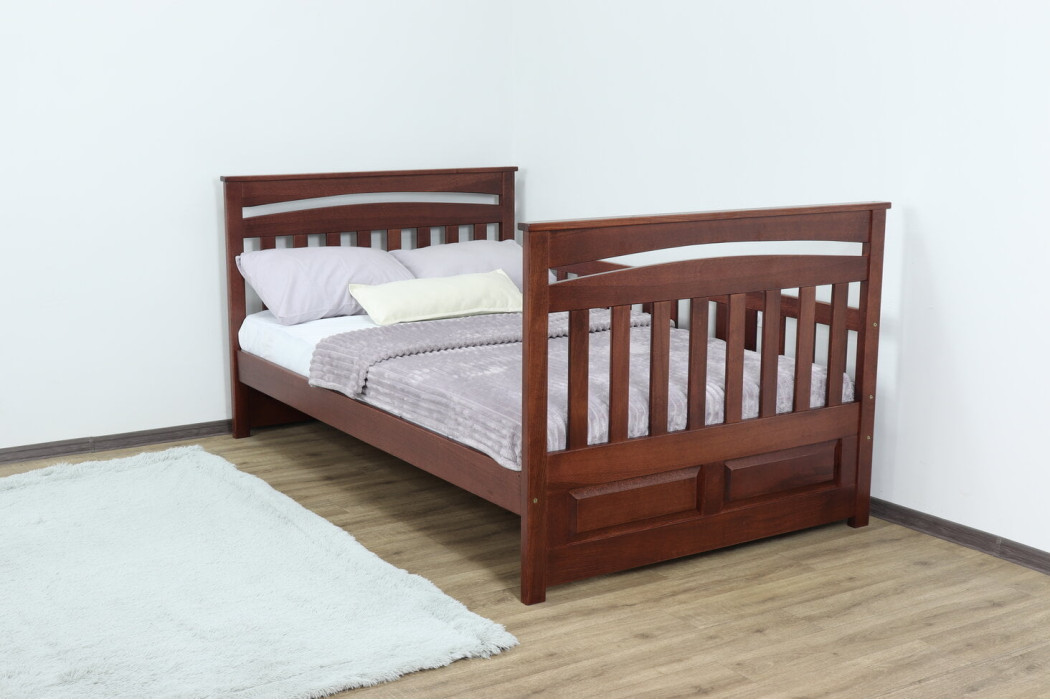 Каркас виготовлений із цільного бука, що відомий своєю твердістю, стабільністю та довговічністю. Екологічне лакове покриття підкреслює природну текстуру деревини та захищає її від зносу. Ліжко має трансформаційну конструкцію — за потреби його легко розділити на два окремі спальні місця.