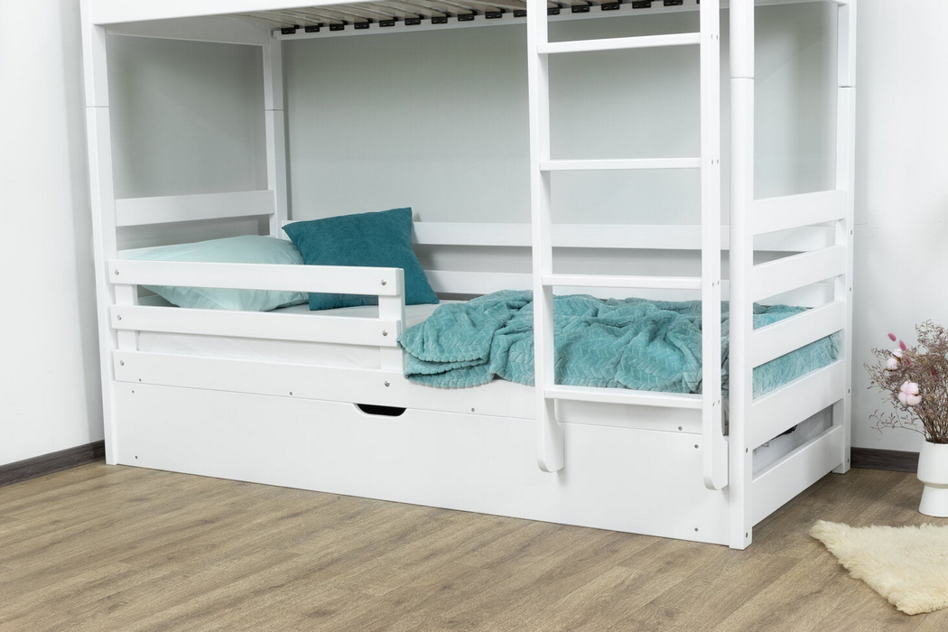 Важливою перевагою є знімний захисний борт на верхньому ярусі, висотою 38 см, який гарантує безпеку дитини під час сну. Універсальна драбина може бути встановлена як зліва, так і справа — отвори для її кріплення передбачені з обох боків. Це дозволяє адаптувати конструкцію під планування кімнати.