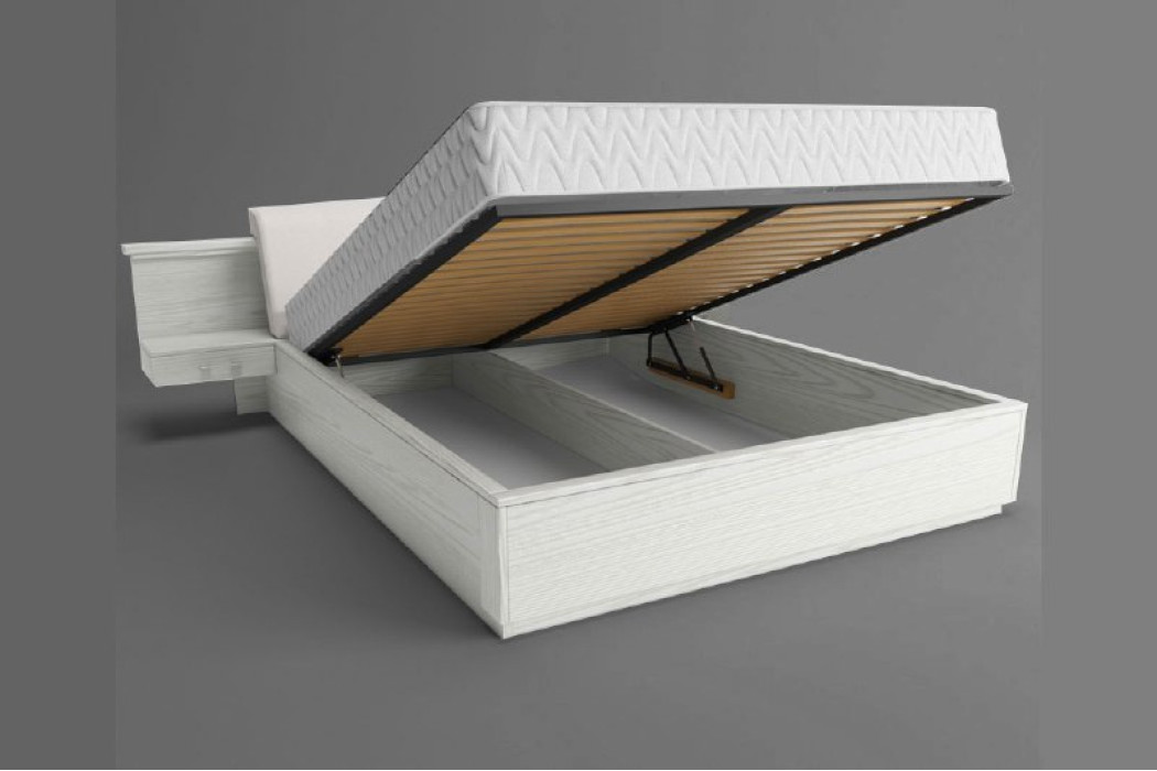 Підйомний механізм в ліжку використовується для підйому ортопедичного каркаса разом з матрацом та доступу до ніши для білизни, що знаходиться під матрацом. Використання такого типу ліжок дозволяє більш раціонально використвувати життевий простір в невеликих приміщеннях. Зазвичай в ніші зберігають ковдри, подушки, пледи та покривала. Для надійного утримання ортопединого каркаса з матрацом у відкритому положення вікористовують газові ліфти, які мають зусилля від 600 до 1500Н. Меньші зусилля потрібні для односпальних ліжок а більші для двоспальних. Підйомні механізми різних виробників можуть мати деякі відмінності, але зазвичай дуже схожі один на одного. Під висловом "підйомний механизм" мається на увазі як раз можливість механічного самостійного підйома каркаса за ручку з тканини. Підйомні механізми в ліжках за промовчанням не мають жодного електрічного обладнання чи моторів, якщо про це не повідомлено окремо. Газовий ліфт як рухлива частина, що забеспечує фіксацію каркаса в верхньому положенні є розхідним матеріалом. Він може із часом втрачати свої властивості та підлягає заміні на на новий.