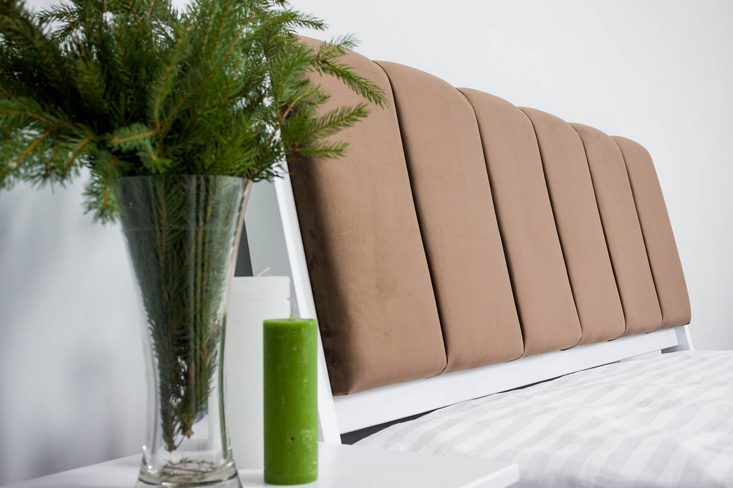 Що може бути простіше ніж дизайн без малюнка або шва? Мінімалізм проти декорування. Узголів'я без декору дозволяє використовувати в дизайні спинки кольорову тканину з малюнком або фотопринтом. Гладка спинка використовується в будь-яких формах узголів'я з будь-якими типами тканин. У цьому випадку форма і колір виступають на перший план. Серед варіантів оформлення: спинка без дизайну - це і є дизайн.