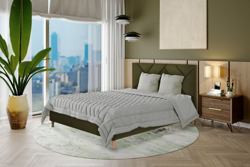 М'яке узголів'я - це комфортно і естетично. На таке узголів'я можна спертися спиною та використовувати його як спинку дивана. Декор м'якого узголів'я може бути будь-яким, від гладкої тканини до квадратів чи декоративних ґудзиків.