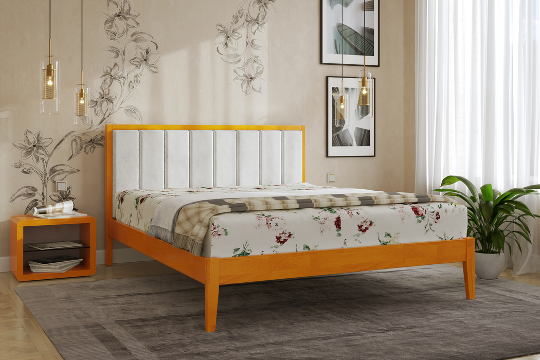Ліжко Грація Преміум виготовлене з масиву сосни – міцного та довговічного матеріалу. Для покриття використовується гіпоалергенний лак італійського виробництва, що забезпечує безпечність для здоров'я та надає ліжку стильний вигляд.