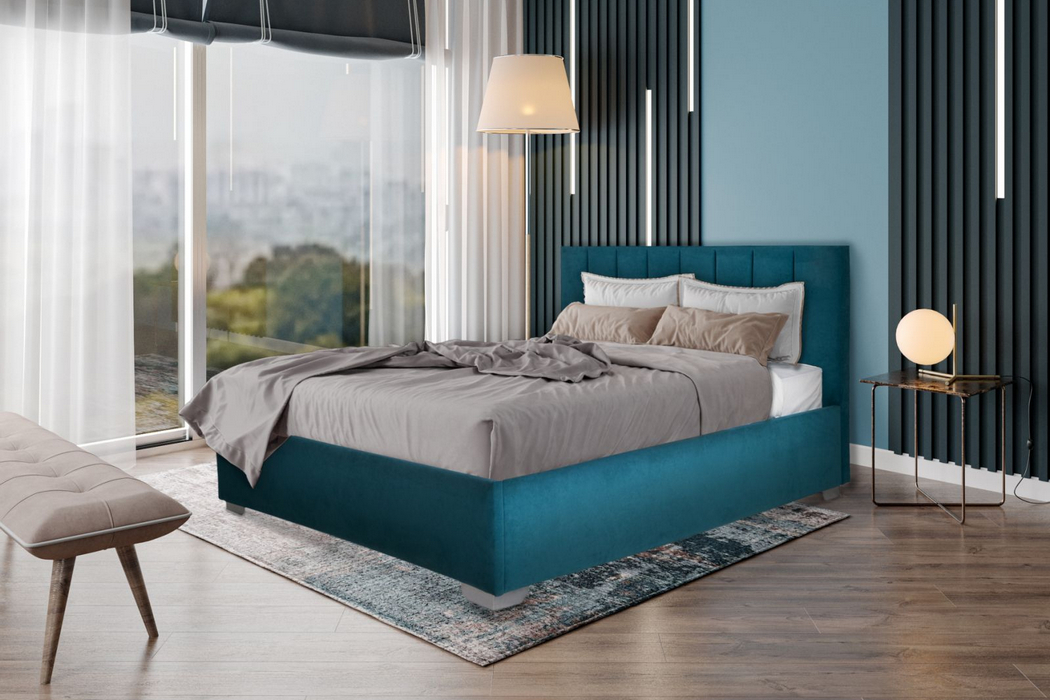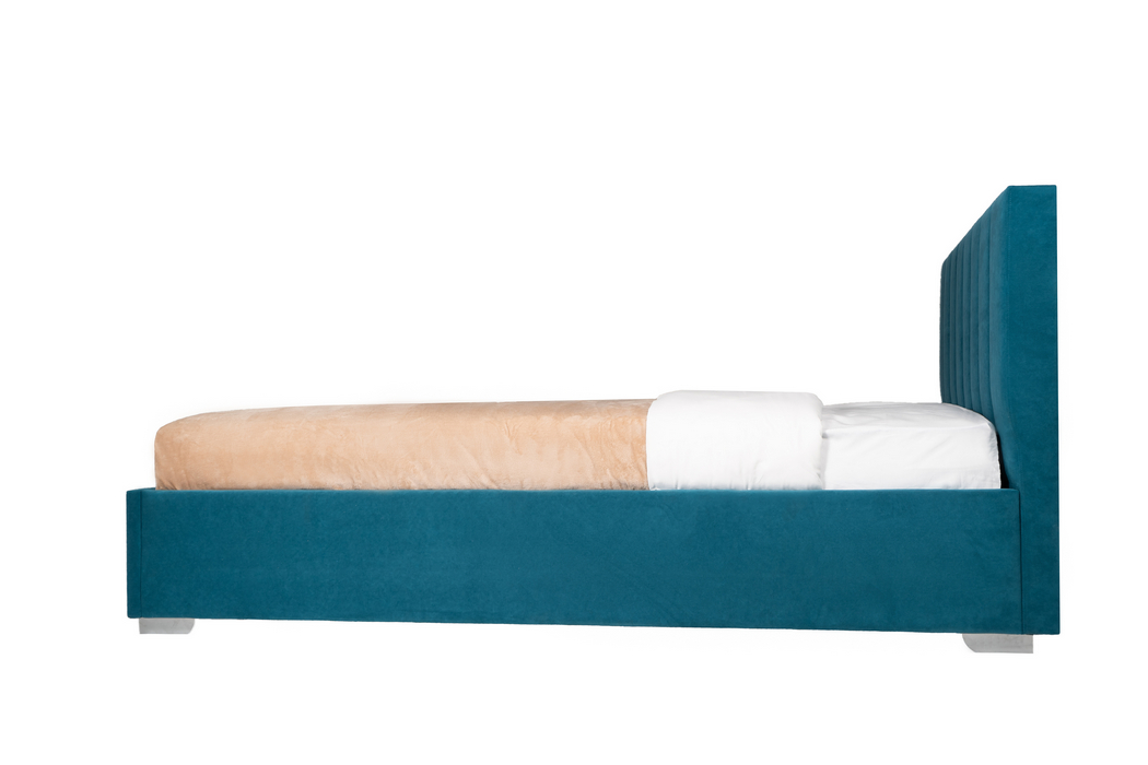 Основа ліжка – цільнозварний металевий каркас із двох рам (верхньої та нижньої), що гарантує міцність і довговічність конструкції. Узголів’я виготовлене з шліфованого ДСП, додатково пом’якшене пінополіуретаном і синтепоном, обшите якісною меблевою тканиною або шкірозамінником на вибір.