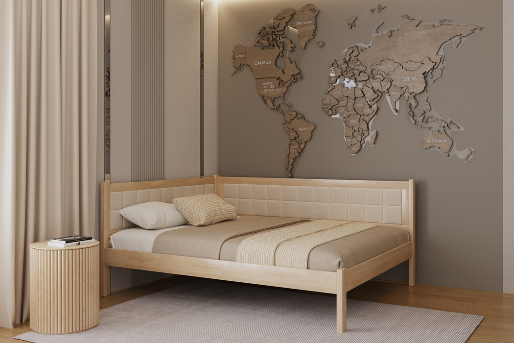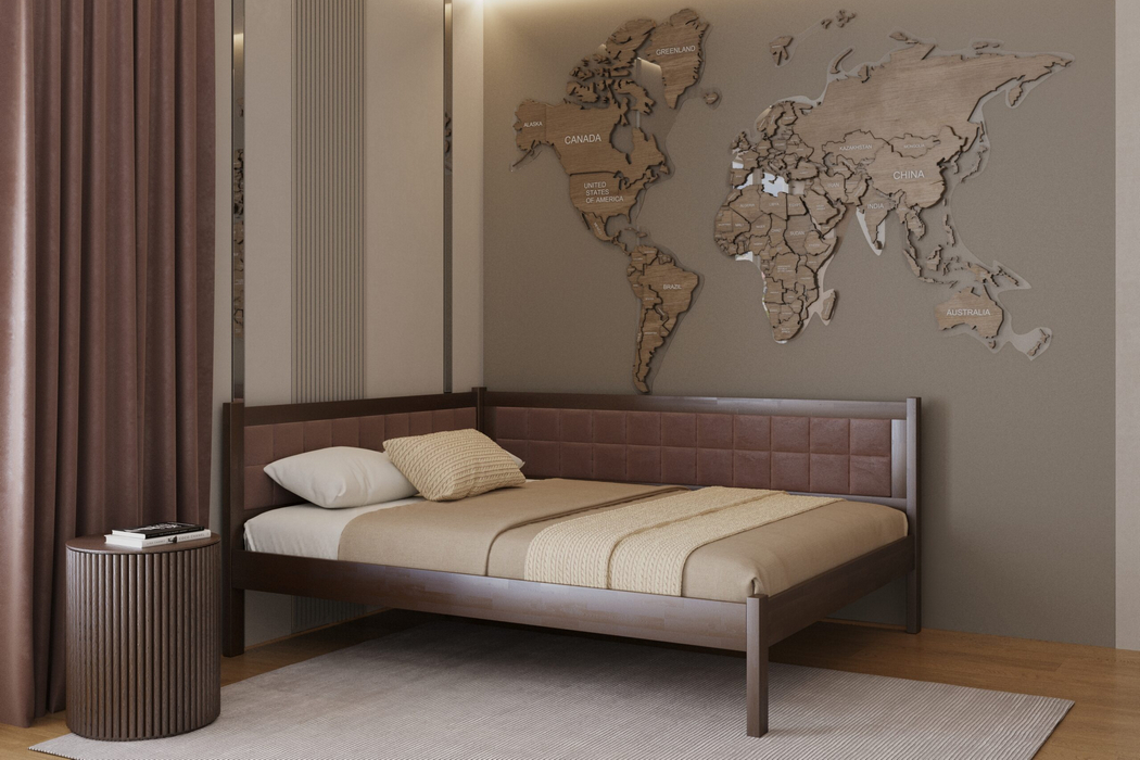 Кутові ліжка можуть мати правий або лівий кут за вашим бажанням. Зручна конструкція ліжка дозволяє відгородитися від холодної стіни або підвіконня. Конструкція кутового ліжка може бути бути використана для односпального, полуторного або двуспального розміру.