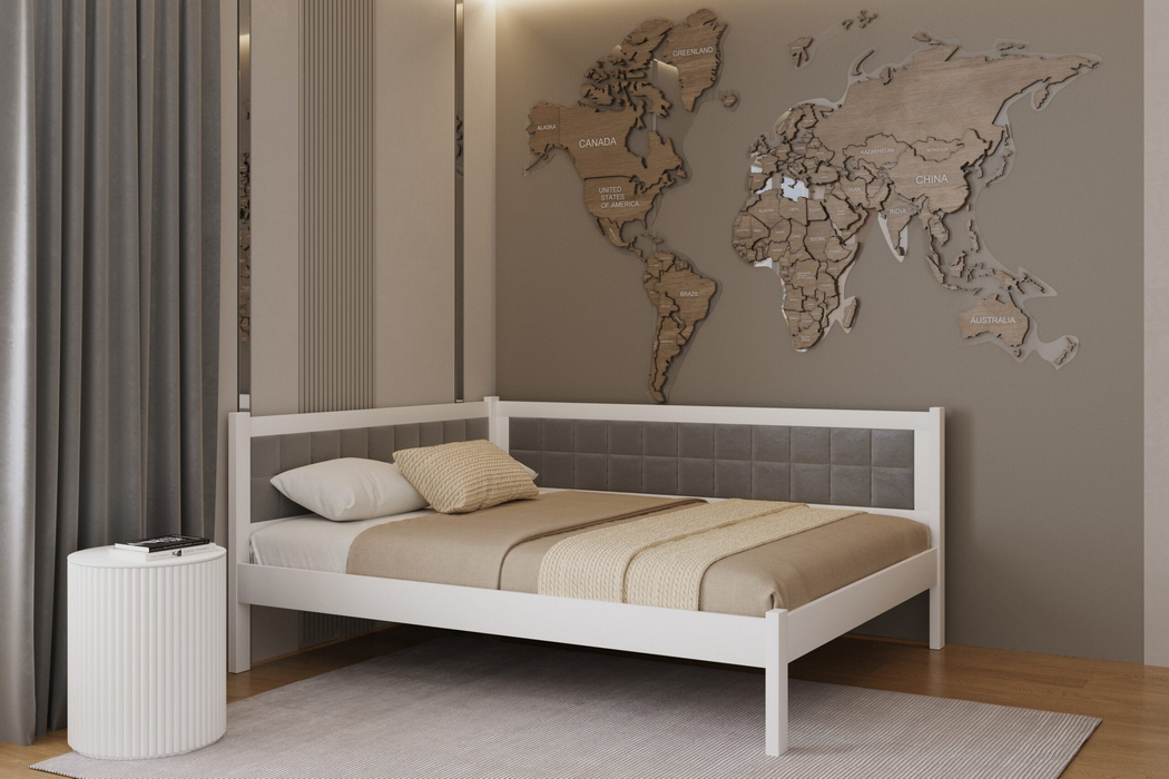 Кутове ліжко Мілвокі з м’якою спинкою Mebli Lev