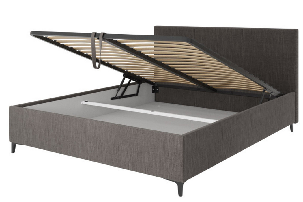 Ліжко оснащене містким коробом для білизни, що дозволяє зручно зберігати постільні речі, ковдри або інші необхідні предмети. Це особливо актуально для раціонального використання простору в спальні.