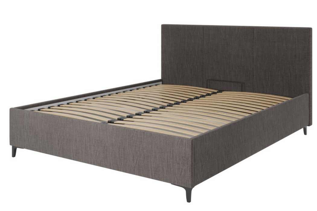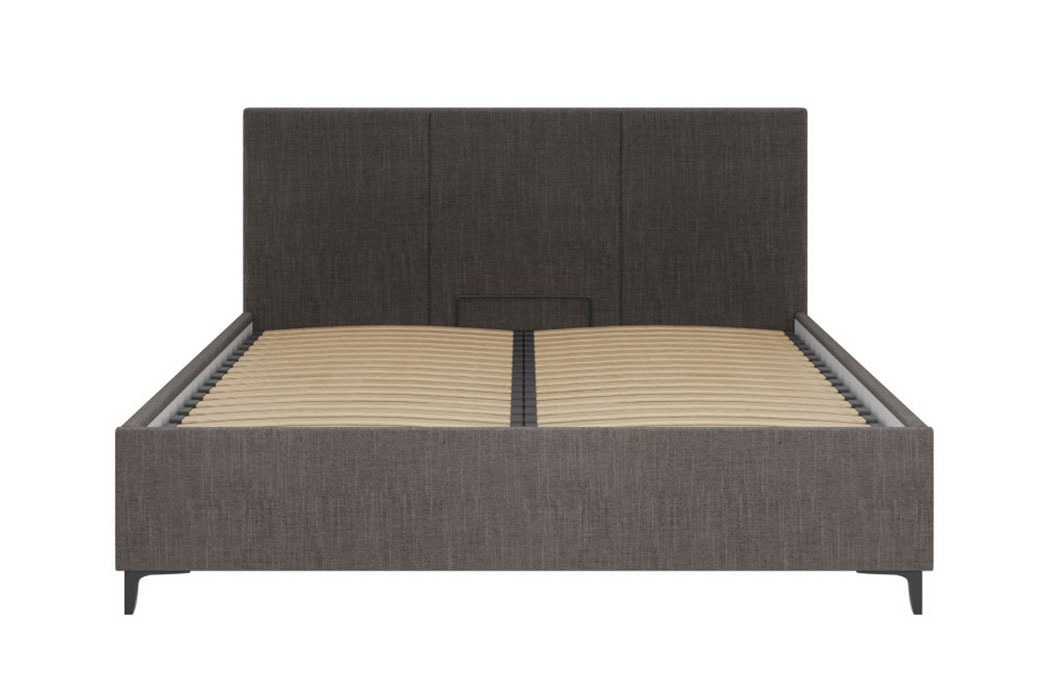 Каркас ліжка виготовлений із поєднання ДСП та фанери, що гарантує стійкість до навантажень і довгий термін служби. Основа доповнена металевою рамкою з ламелями, яка забезпечує додаткову міцність і правильну підтримку матраца.