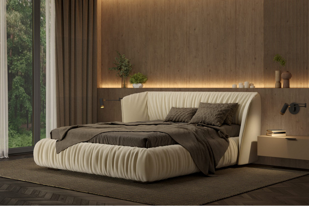 - Тип: двоспальне ліжко з м’якою оббивкою