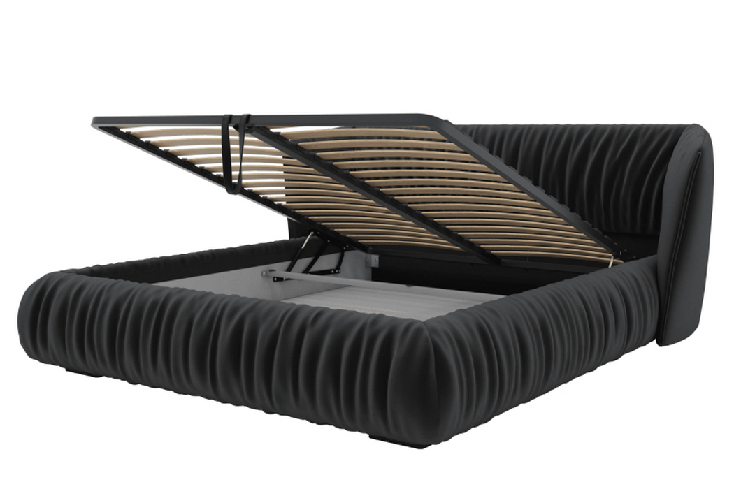 Ліжко оснащене підйомним механізмом, що дозволяє легко отримати доступ до простору під спальним місцем. Модель не передбачає висувні ящики.