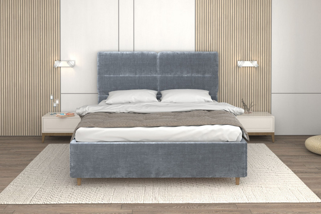 Ліжко комплектується дерев’яними ніжками висотою 10 см, які забезпечують зручне прибирання під меблями і сприяють вентиляції простору. Узголів’я має висоту 122 см, що додає інтер’єру елегантності й забезпечує комфорт під час читання або відпочинку у ліжку. Модель виготовляється під замовлення в обраному кольорі й розмірі, з терміном виконання до 30 робочих днів.
