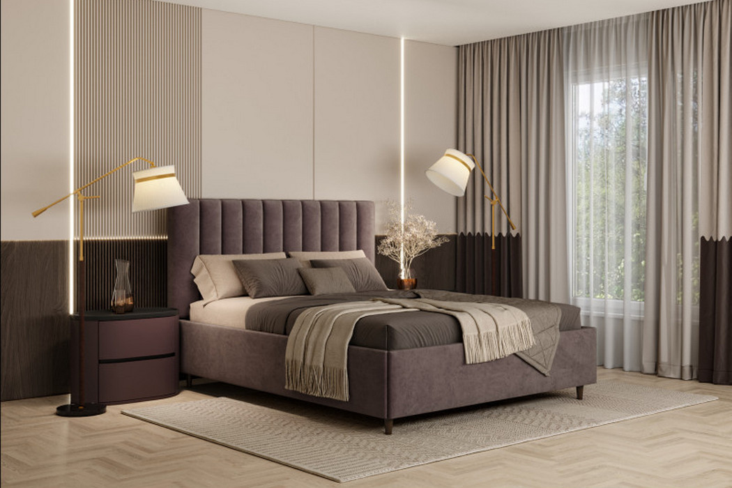Saba — це двоспальне м'яке ліжко на дерев'яних ніжках із підйомним механізмом, що поєднує елегантний дизайн, практичність та функціональність. Модель підходить як для дорослих та сімейних пар, так і для дитячих кімнат, забезпечуючи зручне спальне місце та додатковий простір для зберігання речей.