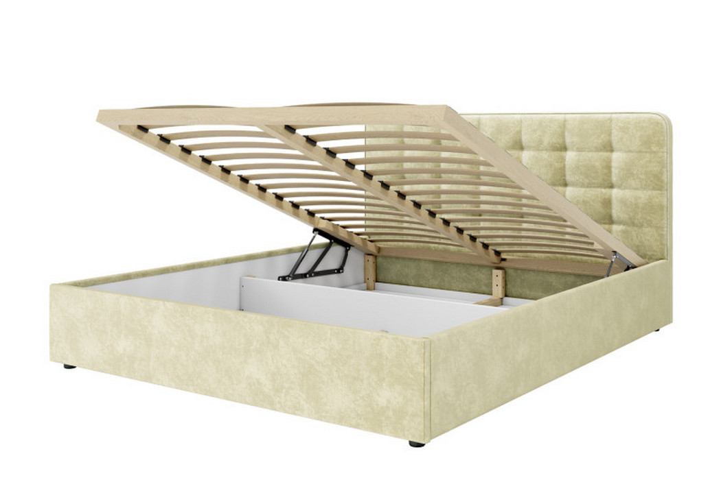 - Підйомний механізм та ортопедичний металевий каркас з ламелями для зручного розміщення матраца.