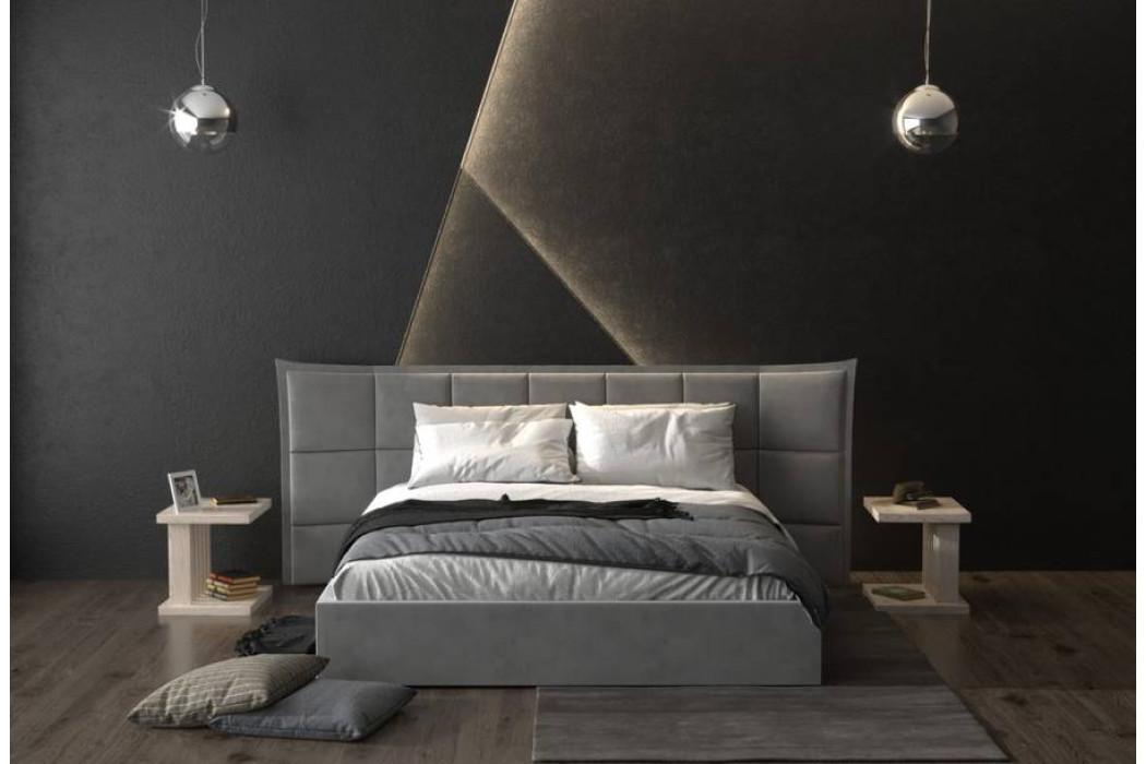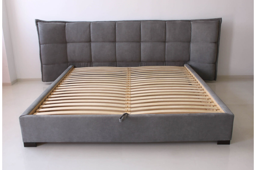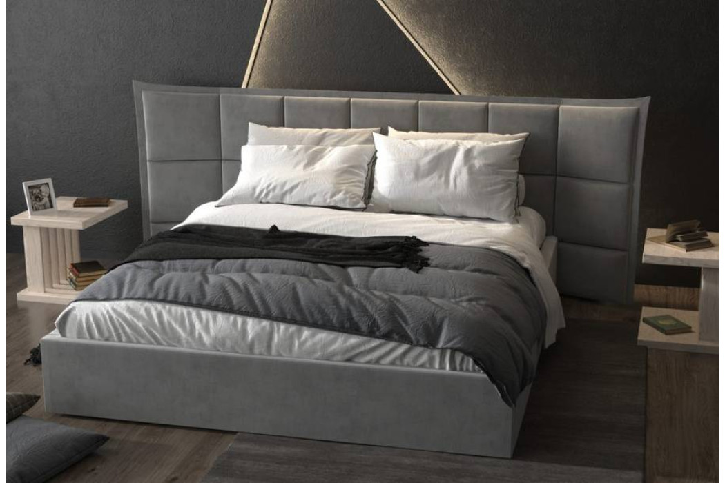 Відмінною рисою ліжка є масивне узголів’я з декоративною квадратною прострочкою. Широка спинка (+108 см до ширини матраца) не тільки візуально додає моделі розкоші, але й забезпечує додаткову зручність для вечірнього читання або перегляду фільмів. Завдяки м’якому наповненню та стильному оформленню, узголів’я служить чудовою опорою та гармонійно доповнює інтер’єр будь-якої сучасної спальні.