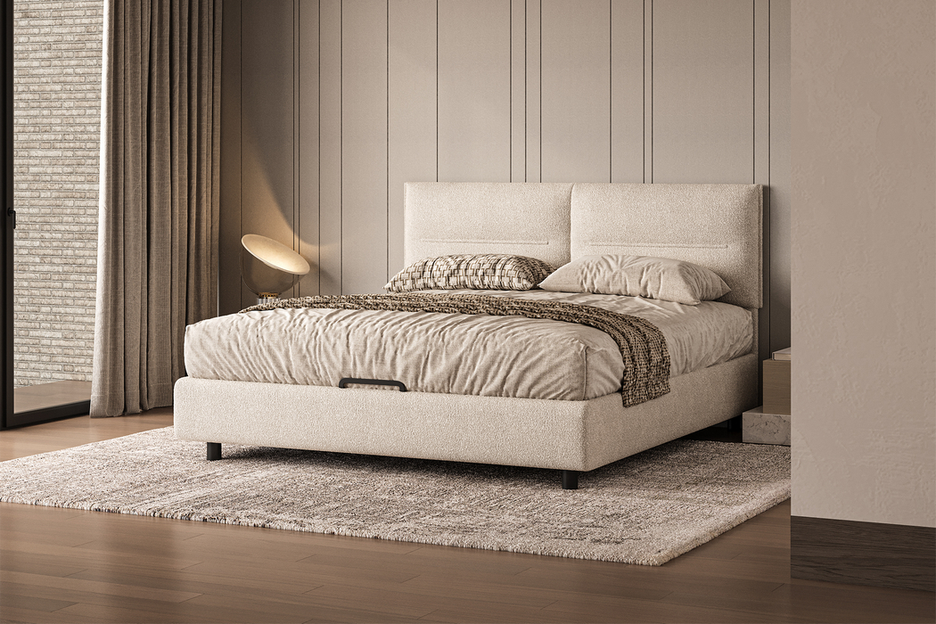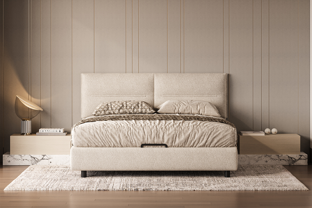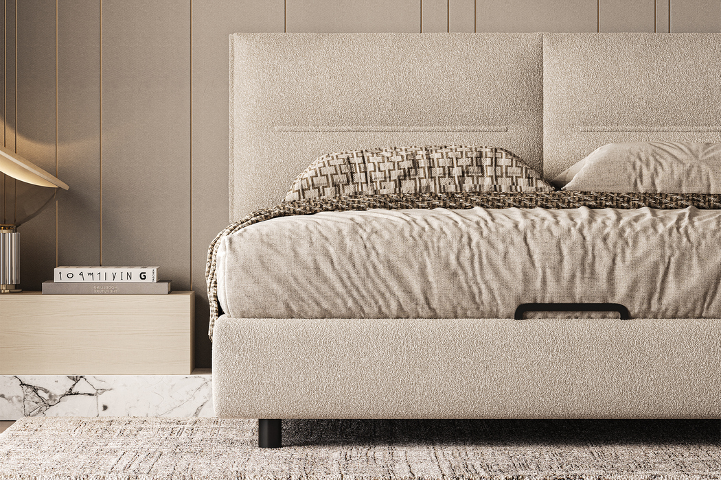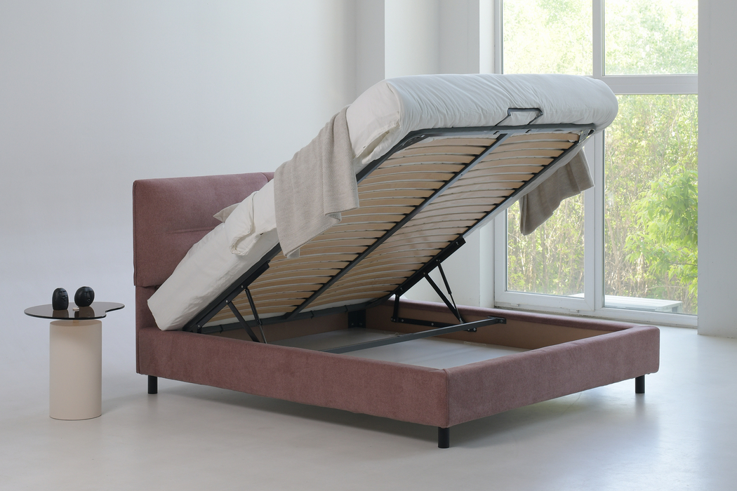 - Простір для зберігання: при комплектації з підйомним механізмом передбачена ніша глибиною 15 см, що дозволяє зручно зберігати постіль, одяг чи іграшки.