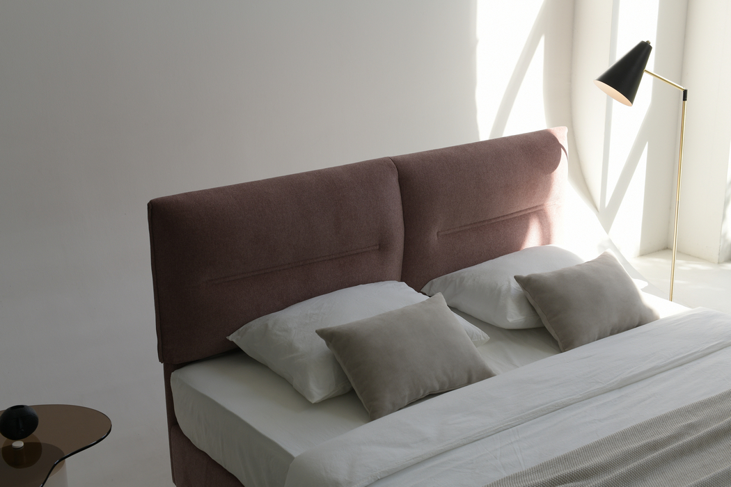 Ліжко Salerno відрізняється строгими лініями і елегантністю. Модель прекрасно вписується в сучасні інтер’єри, забезпечує легкий догляд і комфорт. М’яка спинка додає затишку, а компактна конструкція робить кімнату просторішою. Ліжко доступне в різних тканинах і кольорах для індивідуального замовлення.