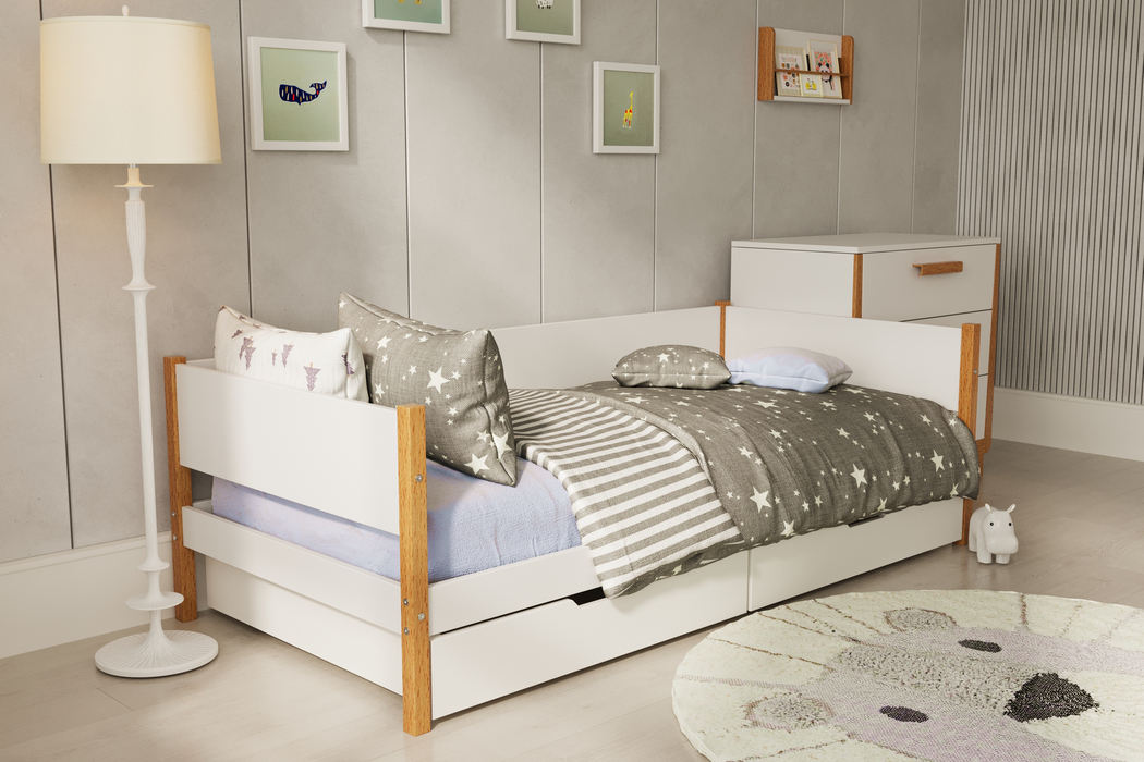 Функціональне та естетичне рішення для спальні. Конструкція спирається на стійкі ніжки, які можуть бути виготовлені з дерева, металу або їх комбінації. Така особливість забезпечує добру вентиляцію матраца, продовжує термін його служби та покращує гігієну сну. Простір під ліжком залишається вільним, його зручно використовувати для зберігання речей або легкого прибирання. Ліжка на ніжках вирізняються різноманіттям дизайнів – від класичних моделей до сучасних мінімалістичних варіантів, гармонійно доповнюючи будь-який інтер’єр і створюючи відчуття легкості та простору в кімнаті.
