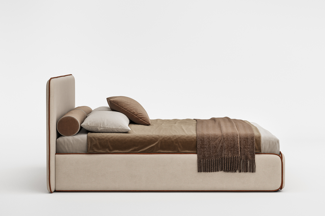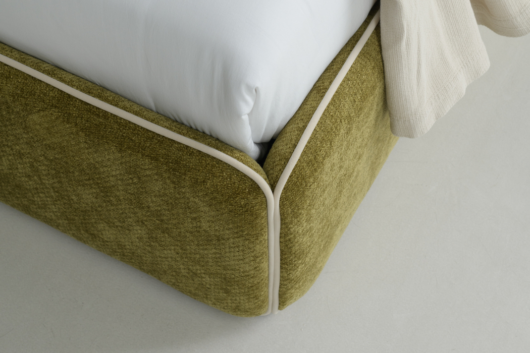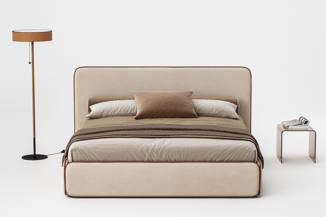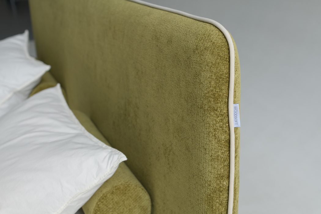 Ліжко Torino від українського виробника Woodsoft поєднує елегантний дизайн, функціональність та продуману ергономіку. Завдяки м’яким заокругленим формам узголів’я та царг ліжко створює враження м’якості, а декоративний кант підкреслює його силует. Кант може бути виконаний як у тон основної тканини, так і в контрастному кольорі, додаючи акцентний ефект у спальню.