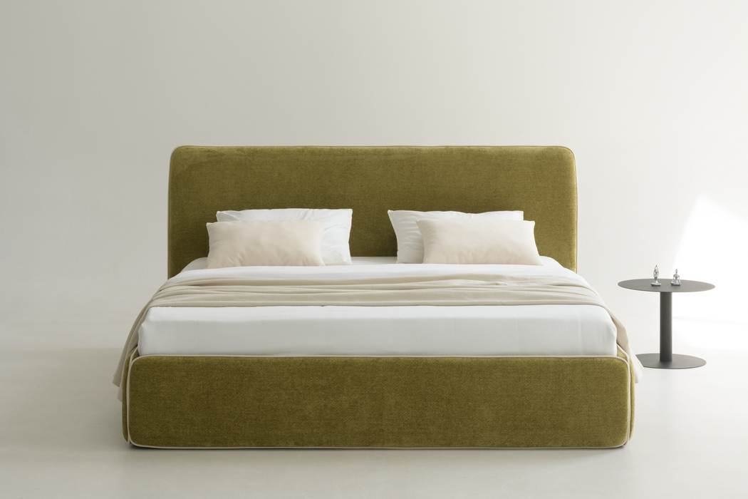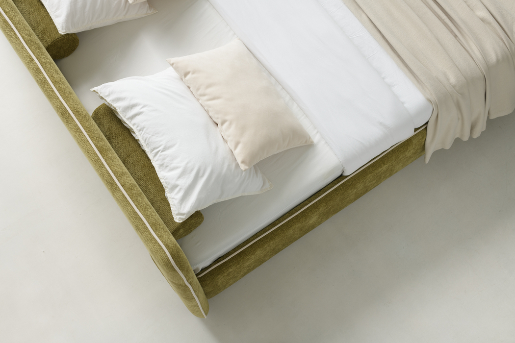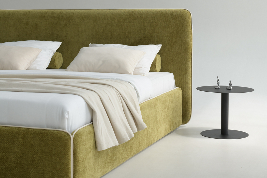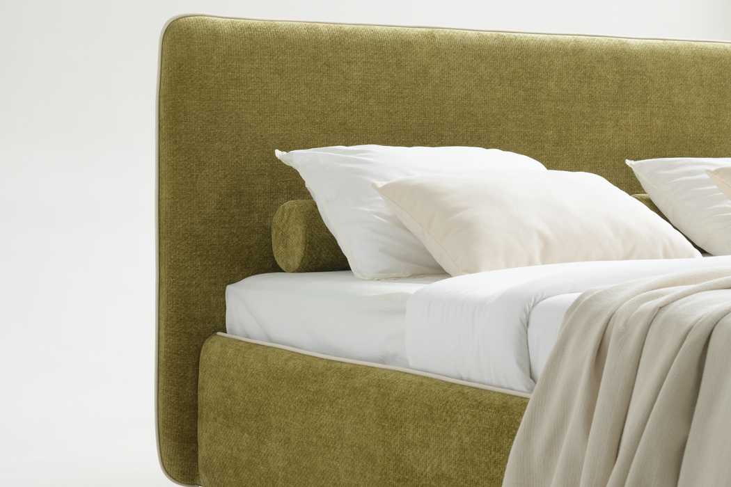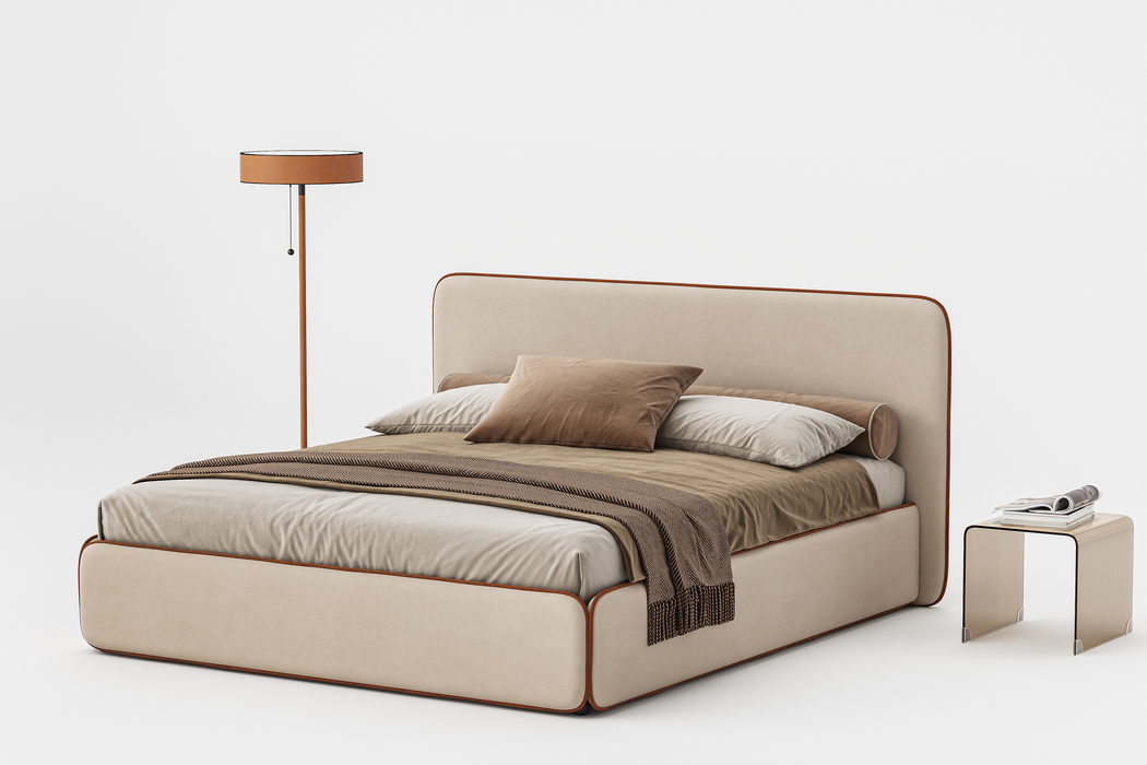 Ліжко Torino від українського виробника Woodsoft поєднує елегантний дизайн, функціональність та продуману ергономіку. Завдяки м’яким заокругленим формам узголів’я та царг ліжко створює враження м’якості, а декоративний кант підкреслює його силует. Кант може бути виконаний як у тон основної тканини, так і в контрастному кольорі, додаючи акцентний ефект у спальню.