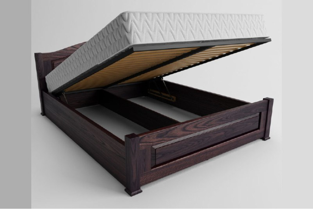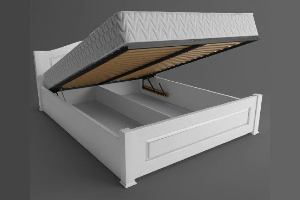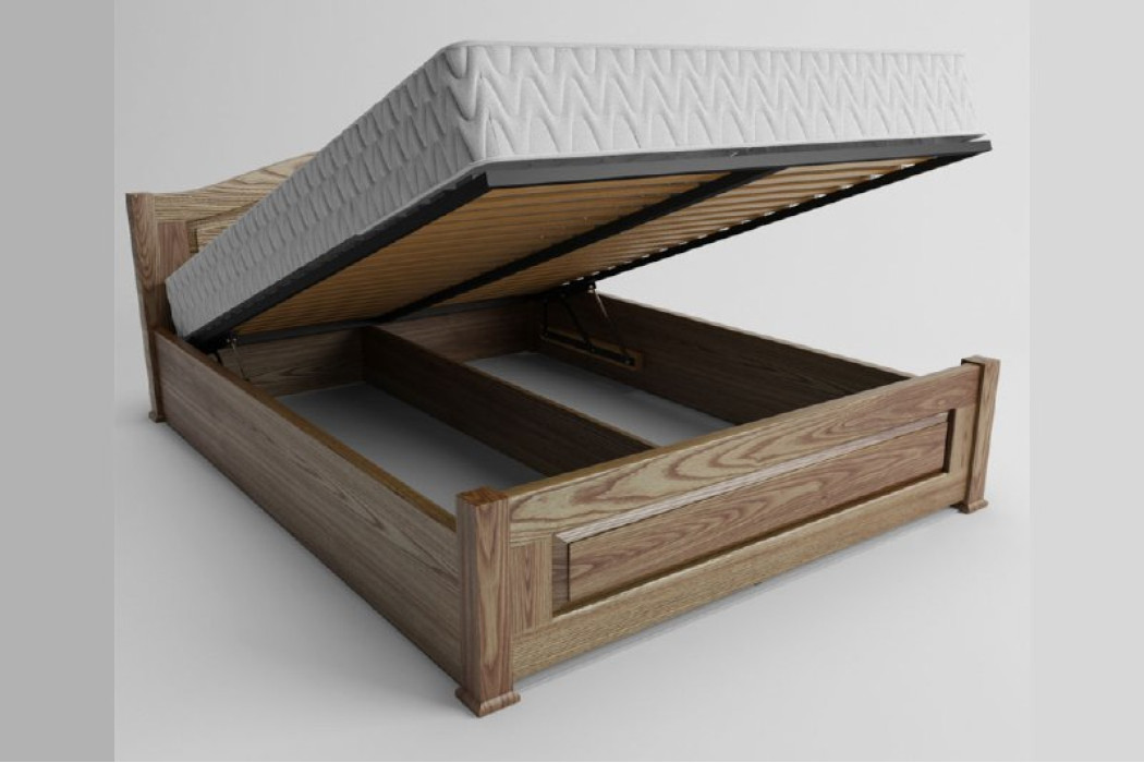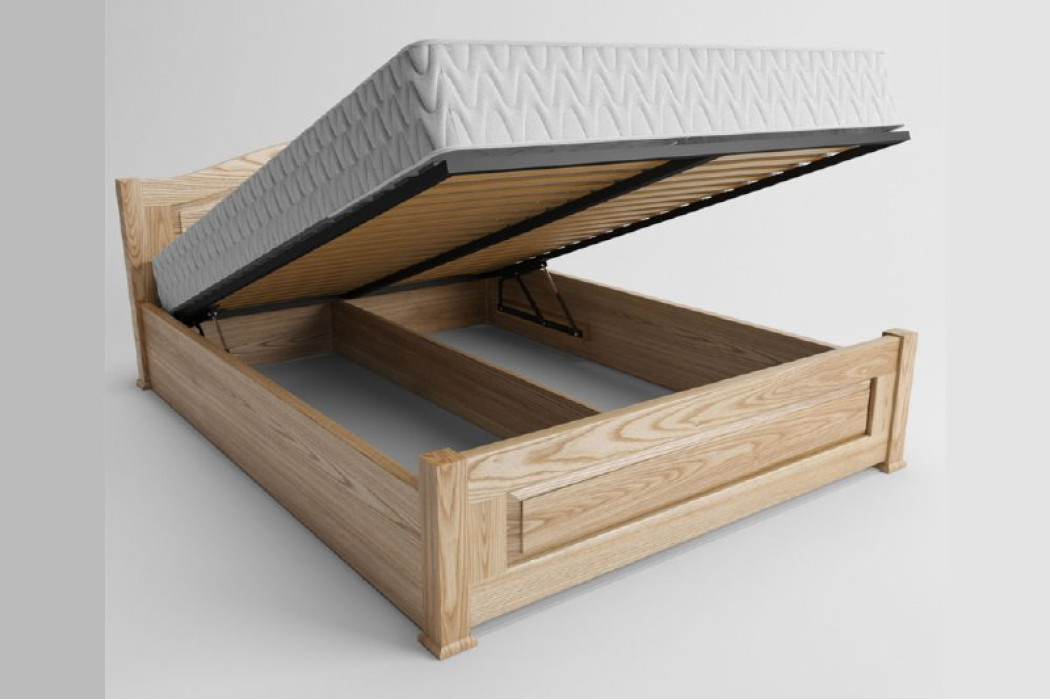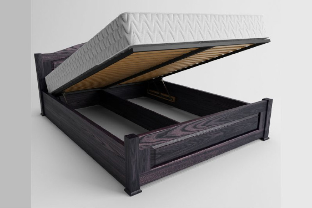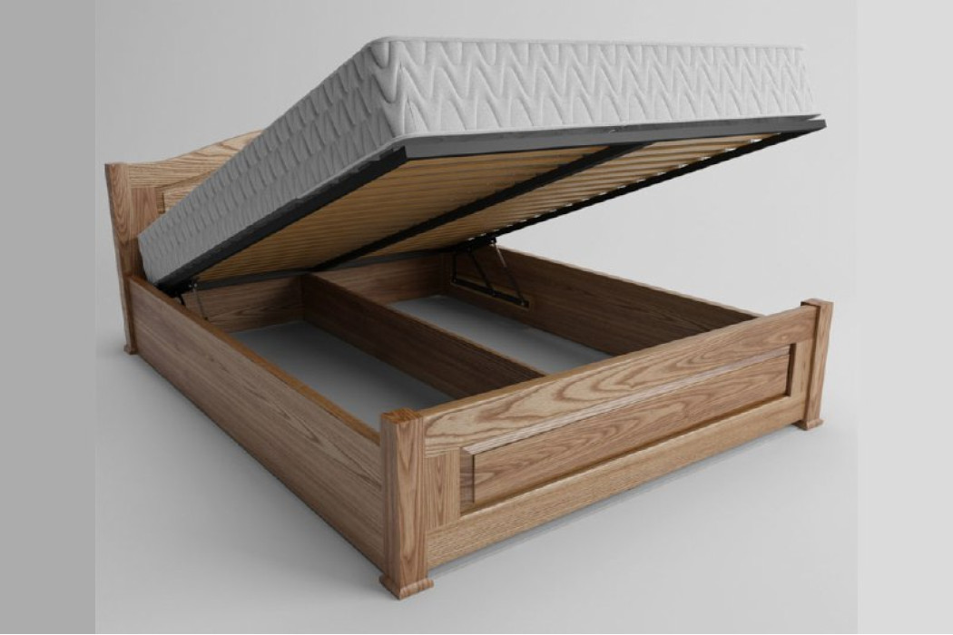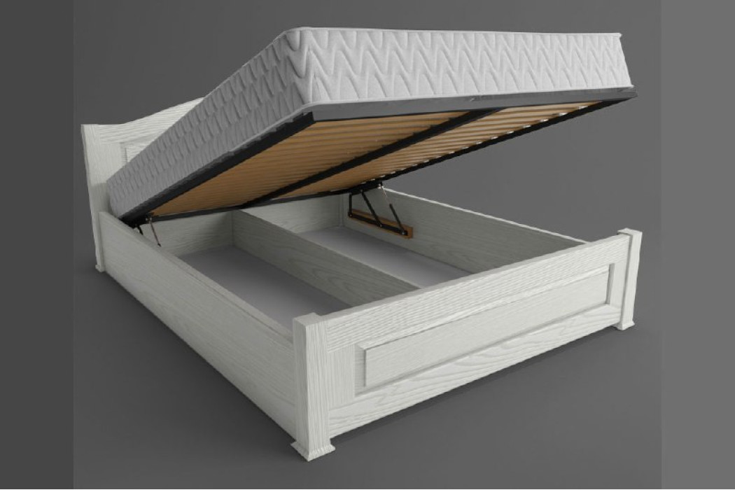 В ліжку присутня металева підйомна рама з заповненням буковими ламелями.