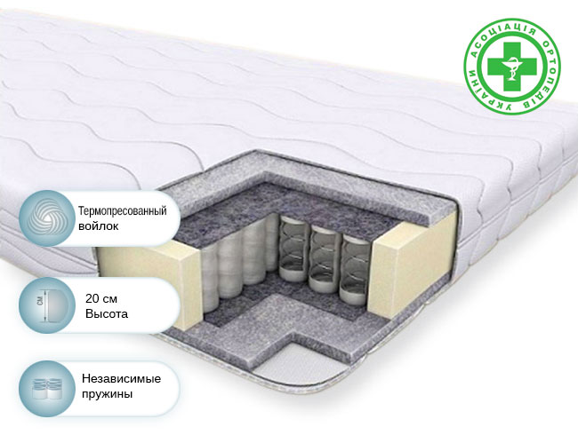 Кожна пружина поміщена в окремий матерчатий чохол, який ізолює її від інших пружин, має в своєму розпорядженні і утримує в вертикальному положенні, дозволяє працювати автономно від інших пружин, створюючи анатомічний ефект.