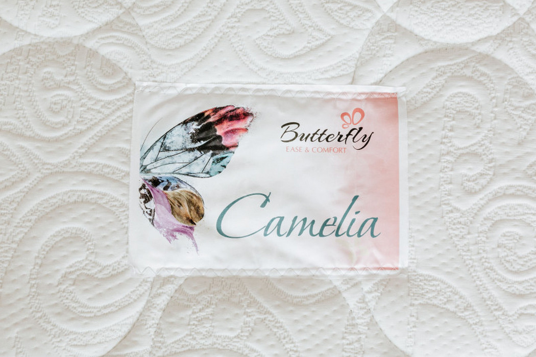 Матрац Camelia 2-сторонній має високі ортопедичні та анатомічними властивості. В основі матраца лежить блок незалежних пружин Pocket Spring, посилений двома рамками зі сталі по периметру, а також системою підтримки "Butterfly" і спеціальними пружинами по кутах матраца.Система Butterfly захищає краї матраца від просідання, допомагає краще підтримувати форму матраца, продовжує термін його експлуатації.