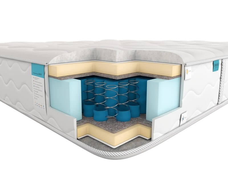 Кожна пружина поміщена в окремий матерчатий чохол, який ізолює її від інших пружин, має в своєму розпорядженні і утримує в вертикальному положенні, дозволяє працювати автономно від інших пружин, створюючи анатомічний ефект.