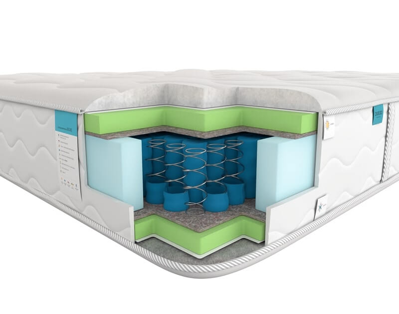 Кожна пружина поміщена в окремий матерчатий чохол, який ізолює її від інших пружин, має в своєму розпорядженні і утримує в вертикальному положенні, дозволяє працювати автономно від інших пружин, створюючи анатомічний ефект.