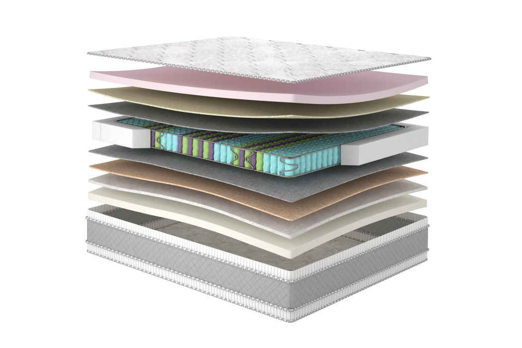 Незалежний пружинний блок з 7 зонами жорсткості складається з 3 типів незалежних пружин. Ці пружини відрізняються по висоті, товщині дроту і кількості витків.