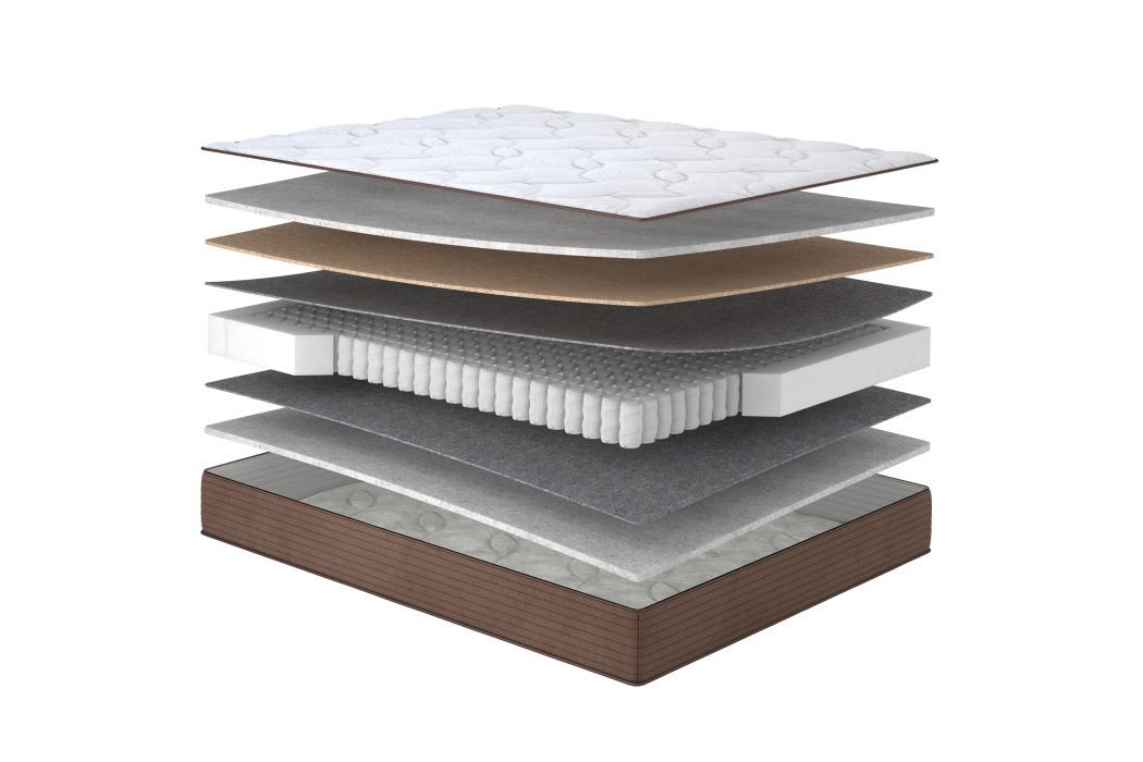 - Кокосова койра — натуральний жорсткий шар, що додає міцності, жорсткості та ефективної підтримки спини.