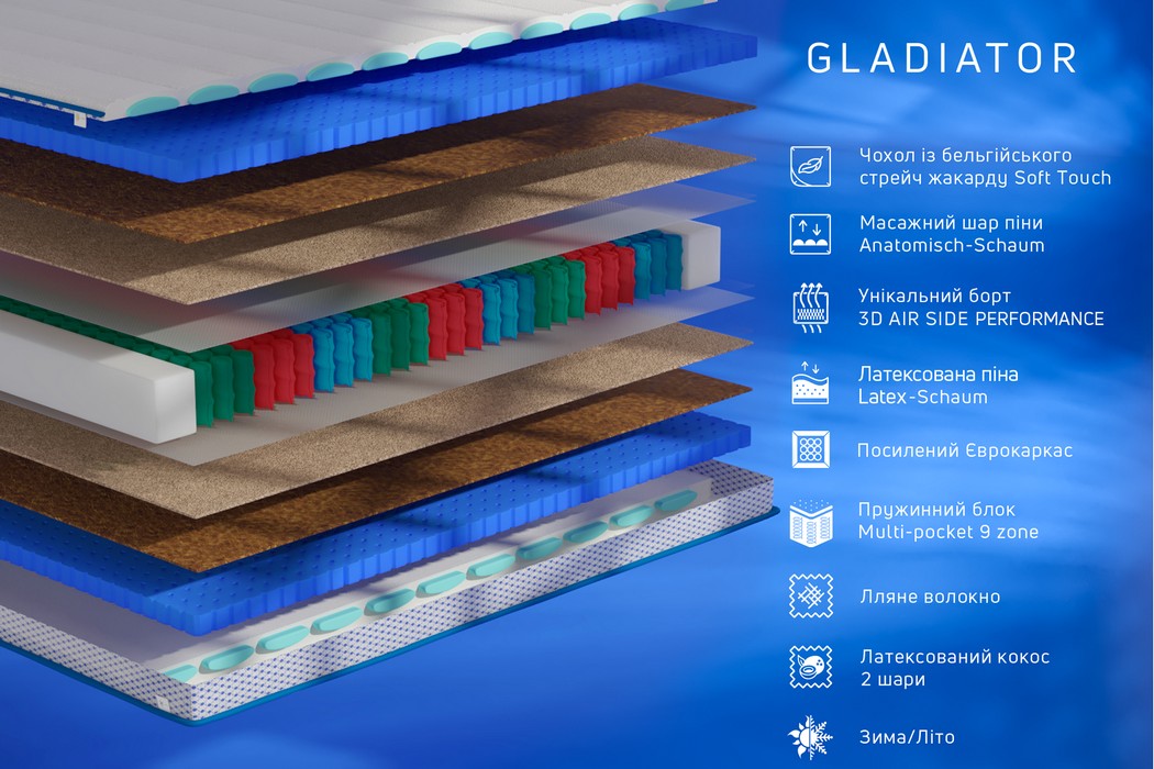 Характеристики Матрац Гладіатор / Gladiator Ultima Sleep