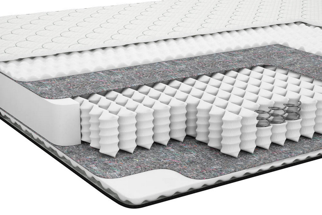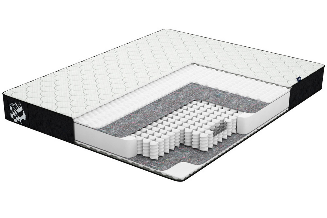 Матрац King має багатошарову конструкцію, що поєднує еластичні та жорсткі шари для оптимальної підтримки: