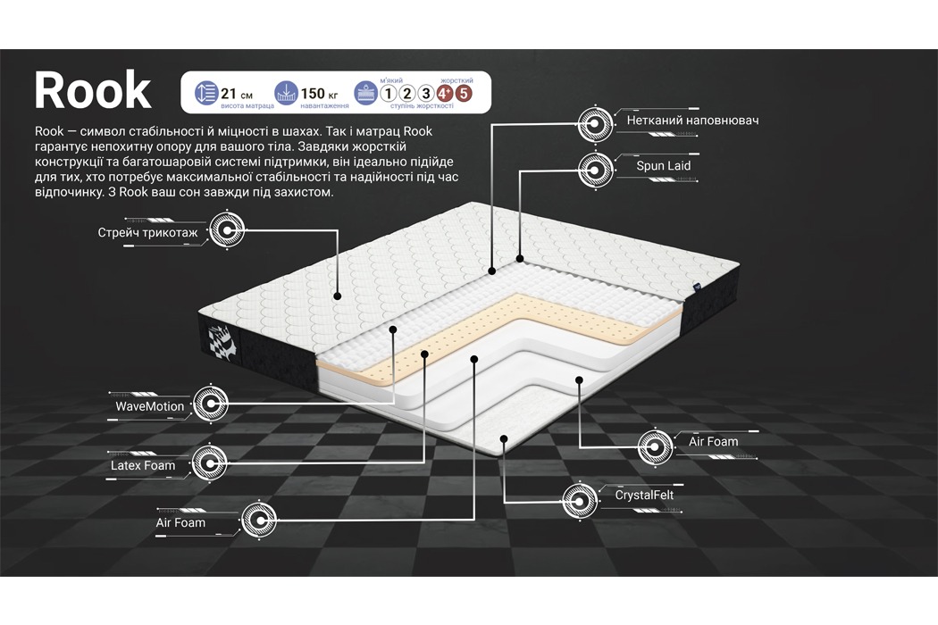 Матрац Rook — Chess Collection від Family Sleep: безпружинний ортопедичний комфорт