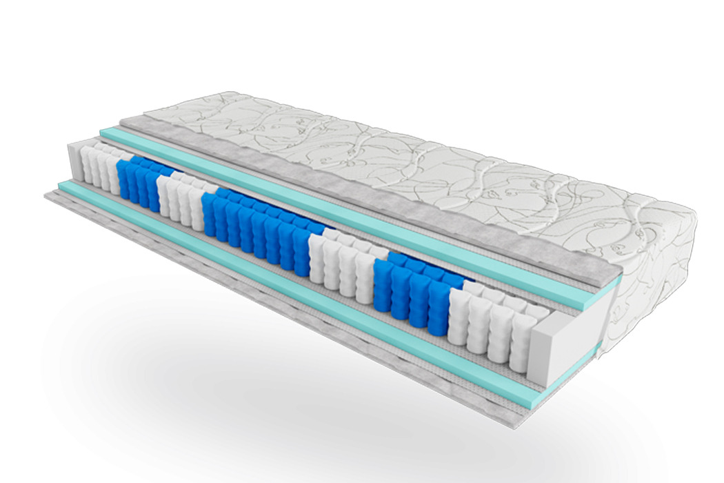 Незалежний пружинний блок з 7 зонами жорсткості складається з 3 типів незалежних пружин. Ці пружини відрізняються по висоті, товщині дроту і кількості витків.