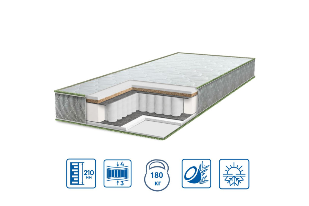 PULSON "Grand Cocos" — це поєднання комфорту, жорсткості та анатомічної підтримки для здорового сну. Матрац розроблений з використанням сучасних технологій та натуральних матеріалів, таких як кокосова койра з латексом, що забезпечує оптимальну жорсткість та повітропроникність. Основа з незалежних пружин Pocket Spring гарантує точкову підтримку тіла, знижує тиск на хребет і усуває ефект «хвилі».