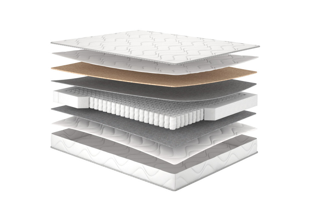 - Термоволокно — рівномірний розподіл навантаження та захист пружинного блоку.