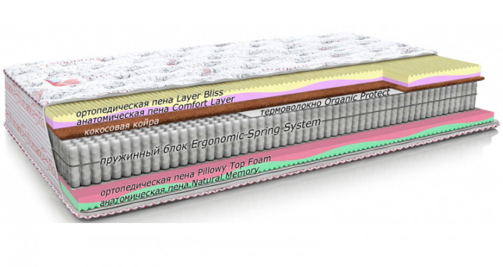 Кожна пружина поміщена в окремий матерчатий чохол, який ізолює її від інших пружин, має в своєму розпорядженні і утримує в вертикальному положенні, дозволяє працювати автономно від інших пружин, створюючи анатомічний ефект.