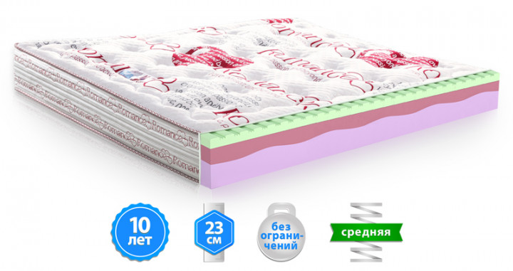 Матрац Flirt / Флірт з колекції Romance від MatroLuxe — це сучасний двосторонній безпружинний матрац, створений для тих, хто цінує поєднання анатомічної підтримки та високого рівня комфорту. Висота 25 см робить його оптимальним для повноцінного відпочинку, а різна жорсткість сторін (середня та помірно жорстка) дозволяє підібрати оптимальну твердість для кожного користувача. Матрац витримує навантаження до 200 кг на спальне місце, що робить його надійним рішенням для пар і дорослих.