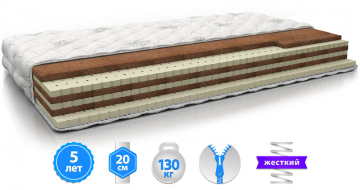 - Оптимальна підтримка хребта завдяки поєднанню латексу та кокосової койри