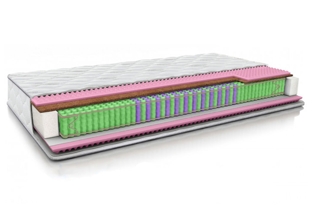- Кокосова койра — натуральний шар, що додає жорсткість та підтримку.