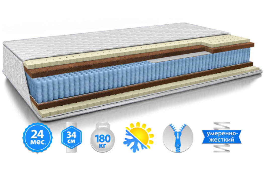 Кожна пружина поміщена в окремий матерчатий чохол, який ізолює її від інших пружин, має в своєму розпорядженні і утримує в вертикальному положенні, дозволяє працювати автономно від інших пружин, створюючи анатомічний ефект.
