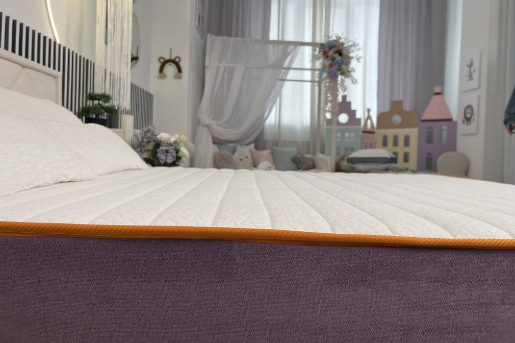 - Верхній шар наповнення складається з пам’ятної піни Memory Foam, яка адаптується під контури тіла, створюючи ефект невагомості. Завдяки цій інноваційній структурі матеріал швидко відновлює форму та рівномірно розподіляє вагу, зменшуючи ризик появи дискомфорту.