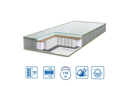 Двосторонній пружинний матрац з ортопедичним і анатомічним ефектом на основі блоку незалежних пружин Pocket Spring. З обох сторін матраца використовується кокосова койра, що надає матрацу додаткову жорсткість. Матрац має відмінні теплорегулюючі і антибактеріальні властивості, а також забезпечує якісну підтримку хребта, зберігаючи його правильне природне положення, перешкоджаючи тим самим його викривленн..