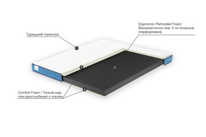 - Склад матраца: блок незалежних пружин, кокосова койра, комірчастий пінополіуретан.