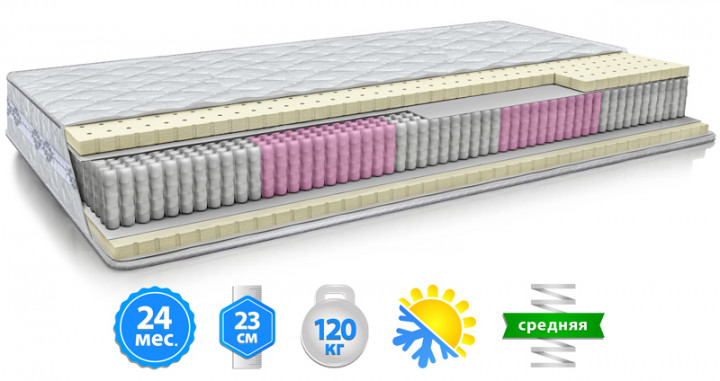 Кожна пружина поміщена в окремий матерчатий чохол, який ізолює її від інших пружин, має в своєму розпорядженні і утримує в вертикальному положенні, дозволяє працювати автономно від інших пружин, створюючи анатомічний ефект.