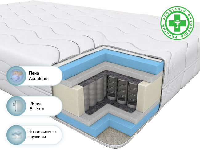 По периметру матраца незалежний пружинний блок укладений в особливу рамку з жорсткого ППУ - еврокаркас, що попереджає просідання країв матраца.